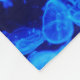 Apresenta uma imagem incrível de águas-vivas nadando juntas no fundo do oceano: elas parecem fluorescentemente brilhantes em contraste com a água azul escura.