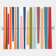 Este cobertor de velo grande tem um design moderno do século médio de linhas horizontais coloridas em uma linha preta vertical com círculos.