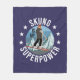 Imagem engraçada de esportes de esqui no inverno, mostrando gráficos de montanha e uma mulher no esqui, e o ditado: esquiar é minha superpotência e pequenas estrelas. Este é o presente perfeito para todos, que adoram esquiar, montanhas e esportes de inverno.