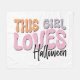 Este design lúdico e colorido mostra a frase "Essa garota ama o Dia das Bruxas" em letras ousadas e retrógradas. O texto é dividido em três linhas, com cada linha uma paleta de cores distinta. A palavra "ISTO" está em uma laranja macia, texturada, "GIRL" em um púrpura pastel, e "LOVES" em um rosa-borbulhlegum leve. A palavra "Dia das Bruxas" é escrita em uma cursiva suave e preta, acrescentando contraste e equilíbrio ao design. Cada letra tem uma forma ligeiramente arredondada e espumante, dando à design uma sensação divertida e caprichosa, perfeita para celebrar o espírito festivo e iluminado do Halloween.