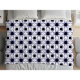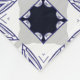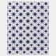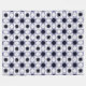 Toalhas e um pano de rosto apresentam um padrão geométrico com estrelas e círculos em azul marinho sobre um fundo branco, proporcionando um visual moderno e sofisticado.