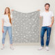 Este belo cobertor de velo apresenta um padrão de tendência com estrelas brancas e flocos de neve sobre fundo falso prateado brilhante. Excelente para presentes de Natal e de inverno.
