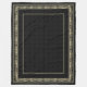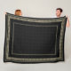 This ultra-soft fleece throw is a dramatic statement piece, drawing its refined aesthetic from the magnificent Etruscan civilization (circa 8th to 3rd century BCE), the mysterious and opulent precursors to Rome. The design features a stunning border of patterned dots and stripes in a luminous gold and pale ochre, set against a rich, sophisticated black background. This aesthetic is directly inspired by the intricate filigree and granulated patterns found on exquisite Etruscan jewelry and the gold funerary artifacts recovered from royal tombs in cities like Tarquinia.