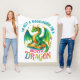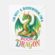 Design vibrante e colorido com uma pilha de livros, um rosa e um dragão. O texto colorido diz: "Eu não sou um rato de biblioteca. Eu sou um dragão de livros". Esse design está disponível em uma grande variedade de produtos.