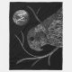 Trabalho de arte preto e branco de um falcão peregrino com lua de cheio e galhos de árvores. Use o modelo de texto para adicionar uma inicial ou um monograma à lua. ♡ Idyllfire
