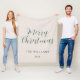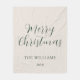 cobertor de feriado sazonal, apresenta um moderno roteiro elegante verde escuro "Feliz Natal" com fundo bege creme, e texto personalizado que pode ser personalizado com seu sobrenome.