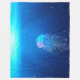 Água-viva fantasma com tentáculos cintilantes e brilhantes no oceano azul.