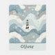 Este adorável cobertor personalizado náutico apresenta um farol confortável com ondas geladas e flocos de neve.
