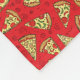 As fatias de pizza de vista saborosos são dispersadas por todo o lado nesta cobertura em um fundo vermelho.