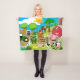 Um cobertor divertido com animais de exploração felizes, incluindo um cavalo, porco, vacas, ovelhas, cabras e galinhas. Um celeiro, um trator e uma cena de fazenda alegre com uma placa de fazenda personalizada com o nome da criança. Um presente de excelente para qualquer criança que ama animais.