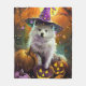 Abraçar o espírito do Dia das Bruxas com esta design encantadora que apresenta um cachorro fofo num chapéu de bruxa rodeado por abóboras entalhadas. Perfeito por adicionar um pouco de charme assustador às suas comemorações festivas.