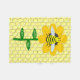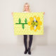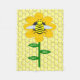 Este maravilhoso cobertor de velo apresenta uma imagem gráfica de um bonitinho amarelo com listras, olhos, antenas e pernas pretas. Tem asas bonito, azuis e brancas. A abelha está sentada no meio de um girassol amarelo-ouro. A flor tem um caule verde e três folhas. A mensagem "dia feliz das abelhas" aparece espalhada pelas três folhas. O fundo é composto por um padrão amarelo de mel.