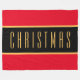 Este design desportivo divertido apresenta o texto CHRISTMAS centrado numa banda de centro preto em negrito, traçada em ouro fosso. O texto pode ser personalizado. As extensas faixas superior e inferior adjacentes são vibrantes e vermelhas.