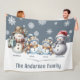 Feriado no Banquete. Família Snowman de 4 Folhetos de Natal Personalizados com Mãe, pai e 2 crianças de Neve. Família de quatro bonecos de neve personalizados mantém o cobertor de Natal.