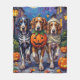 Adoráveis Setores Ingleses vestidos com fantasias lúcidas de Halloween carregar baldes de abóbora enquanto trick-or-tratando sob o céu iluminado pela lua. Este design festivo põe em evidência o casaco, os olhos gentis e a personalidade simpática da raça, que se alimenta da seda, capturando perfeitamente a atmosfera assustadora e divertida da noite de Halloween. Uma bela celebração para amantes de cachorros e fãs do Halloween.