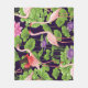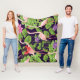 Cobertor De Velo Flamingo, plantas tropicais, fundo negro.
