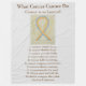 A arte apresenta o "Anjo da Fita Dourada e Cinza" para mostrar apoio ao cancer cerebral pediátrico. A fita combina a fita dourada para o cancer da infância e a fita cinza para o cancer do cérebro. A arte mostra um anjo guardião segurando uma fita de reconhecimento de cinza e ouro e o poema de "O que o Cancer não pode fazer" impresso ao seu redor. As palavras do poema dizem "O que o Cancer não pode fazer, o Cancer é tão limitado... Não pode aleijar o amor. Não pode destruir a esperança. Não pode corroer a fé. Não pode destruir a paz. Não pode matar amizade. Não pode suprimir memórias. Não pode silenciar a coragem. Não pode invadir a alma. Não pode roubar a vida eterna. Não pode conquistar o espírito. -Autor Desconhecido" Faça com que a equipe de conscientização do cancer personalizada fique em branco para você ou como presente para um ente querido. Adicione suas próprias palavras ou imagens a este cobertor de quimio flexível para obter presentes especiais de cancer de fita de reconhecimento.