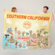 O cobertor brilhante e encantador de desenhos oferece uma visão caprichosa dos parques do sul da Califórnia - personagens bonitinhos apreciam o sol quente da Califórnia mostrando Los Angeles, San Diego, Riverside, Palm Primaveras, Anaheim e Long Beach, Anza Borrego e Joshua Tree, bem como as cidades fronteiriças de Tijuana, Tecate e Mexicali.