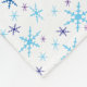 Esse cobertor de velo bonito é decorado com um padrão abstrato de flocos de neve azul delicados, turquesa e roxo flutuando sobre fundo branco de neve. Adorável para a época de Natal de inverno ou qualquer época do ano!