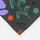 A "Flora Crepúscula" apresenta flores vibrantes e arrojadas em roxo, laranja e verde, colocadas sobre um fundo escuro. Este padrão marcante adiciona um toque de elegância e mistério, perfeito para qualquer espaço moderno.
