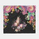 Inspired by watercolor and the Paisley pattern, this design features a corner floral paisley design with a paisley butterfly on a black background fleece blanket.