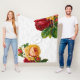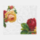 Um design elegante com uma cor damasco de cinza clara e o seu monograma personalizado faz um cenário esplêndido para uma imagem floral bonito vintage de rosas luxuosos em vermelho e amarelo, um trendy olhar boêmico para sua casa.