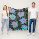 Cobertor De Velo Flores Azuis e Roxas em Preto