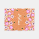 Bonito cobertor de velo para garotas. cobertor laranja com flores em branco e rosa. Abelhas voando. Personalize com o nome do seu filho.