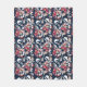 Cobertor De Velo Flores brancas e vermelhas em azul.