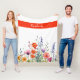 Este vibrante cobertor de fleece personalizado com flores silvestres em aquarela apresenta um padrão com uma mistura animada de flores em tons de joia roxos, laranja e vermelhos, combinados com uma tipografia moderna e elegante.