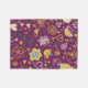 Flores Whimsical e Pássaros voam cobertor, fofo, artístico, brilhante e alegre, apresenta um fundo roxo com aves amarelas e flores de branco, teal e amarelo.