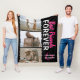 Linda e macia manta de fleece com 3 fotografias com bordas sobrepostas irregulares, texto 'melhores amigos' em caligrafia e nomes.