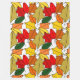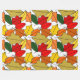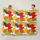 Essa grande manta de velo tem um design de folhas se repetindo para fazer uma pilha de folhas em tons de amarelo, vermelho, laranja e verde.