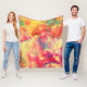 Este cobertor de velo tem um belo padrão de abstrato em cores de laranja, amarelo, rosa, azul-esverdeado e creme que lembra a arte da tinta alcoólica.