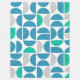 Um padrão moderno de semicírculos e quadrados lúdicos e de tom aquático.