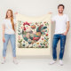 Cobertor De Velo Folk Patchwork Rooster with Floral Accents