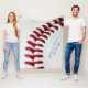 Adicione a personalização com uma assinatura e mensagem especiais a esta nova foto de beisebol próxima, mostrando pontos vermelhos. Linhas de assinatura parecem uma bola autografada.
