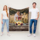 Este cobertor de fotos do casal de casamento de girassol rústico e rosas de lama faz um presente perfeito. Este cobertor apresenta girassol amarelo-aquarela com rosas burguentos e bófia e verde-salva sobre fundo de madeira. Este é um esquema de cores perfeito para o final do verão ou casamento outono. Personalize com nomes e data do casamento.