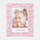 Feliz cobertor de natal com fundo rosa e estrelas. Personalizada com seu nome e foto. Excelente para os feriados de inverno.