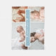 Cobertor de fleece moderno apresenta 4 fotos em uma grade com o nome do bebê e estatísticas de nascimento em um bloco retangular azul bebê. Um verdadeiro tesouro!