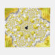 Este produto apresenta um gráfico digital fractal abstrato em ouro e branco com Mandelbrot preto no meio.