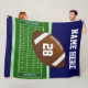 Cobertura personalizada de futebol com seu nome, número de Jersey e suas cores da equipe (consulte Instruções para alterar o fundo azul e branco e o texto para QUALQUER COR). Digite SEU TEXTO na caixa de texto modelo à sua direita abaixo de "Editar este modelo de design" ou exclua qualquer texto. Excelente personalizou presentes de futebol para rapazes e homens que adoram o jogo. LIGUE para a Linda para ajudá-lo a fazer alterações, personalizá-las. Posso fazer mudanças de design para você também para muitos esportes em qualquer cor.