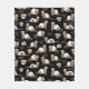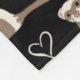 Furões desenhados à mão, xoxo e cobertor de padrão de corações, fundo preto.