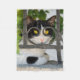 Uma gata cega bicolor está olhando atentamente através de uma cerca de ferro em formas brutas, parece que ela veste quadros de óculos. Este cobertor de velo mole é uma ideia de presente para amantes de gatos. Foto tirada por Katho Menden em uma ilha grega.