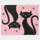 Gatos negros com estrelas pretas com uma geração de baby boomer rosa que lembra os anos 50.