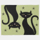 Cobertura com gatos pretos com estrelas pretas com fundo "verde de grama de trigo" que lembra os anos 50.