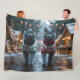 Cobertor De Velo Gatos Azul Russo Natal Neve Férias