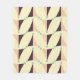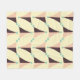 Geometric pattern with overlapping beige, peach, and brown triangles, accented by teal circles. The design forms a zigzag, creating a retro vibe.