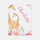 Um cobertor de velinha adorável para uma menina. Design apresenta uma girafa giratória, mãe e bebê, com lindas flores rosa. Personalize facilmente com um nome usando os campos de modelo on-line.