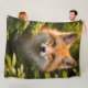 Scription wrap yourself in the rustic beauty of the wild with this premium high definition red fox fleece blanket featuring a breathtaking 8000 portrait of a fox peeing through lush woodland greenery this plush throw captures every detail of its soft fur and soulful eyes